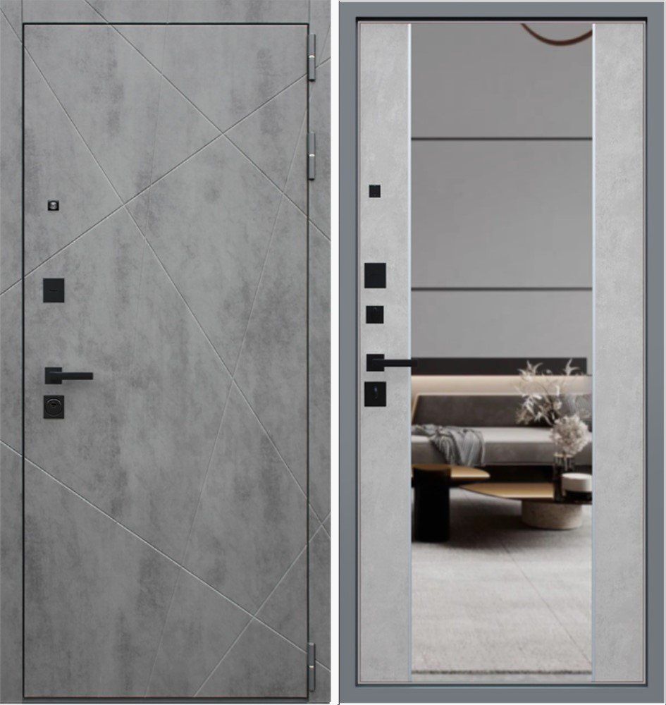 Экошпон.Наружный лист металла 1,5 мм. Объемная фрезеровка МДФ 10 мм, цвет «Бетон темный»; Наличник МДФ 80 мм, с фрезеровкой