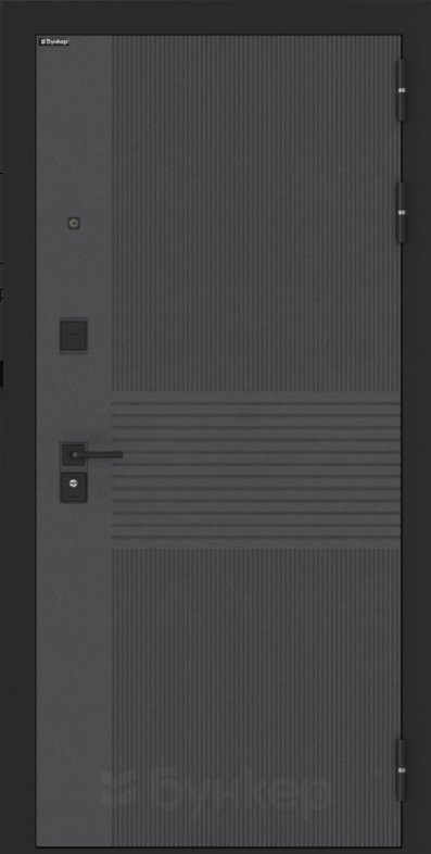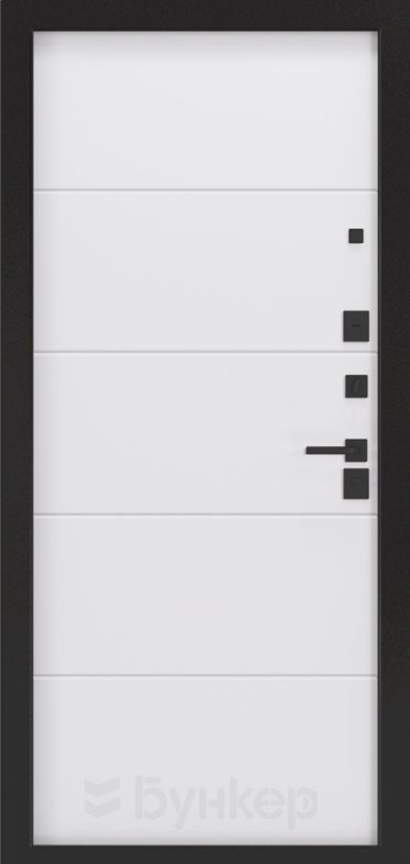 Черная матовая: Броненакладкая, сувальдные накладки со шторкой, ручка, ночник, цилиндр ключ-вертушка, глазок по центру или сбоку