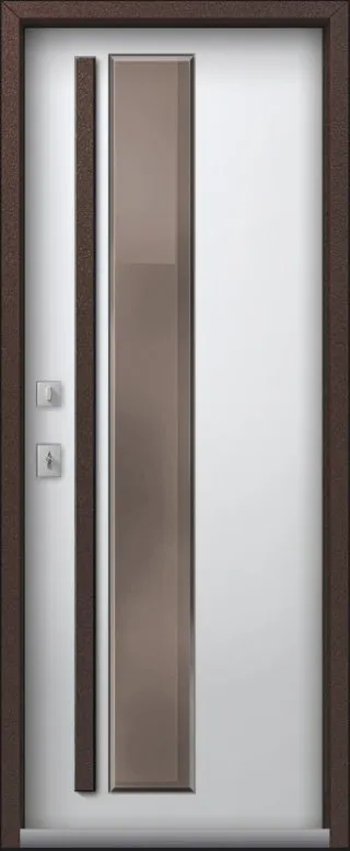 В конструкции двери Т-4 PREMIUM используется двухкамерный стеклопакет толщиной 48 мм. Стекло цвета Bronze с низкоэмиссионным энергосберегающим покрытием, сохраняет тепло внутри дома и практически исключает теплопотери. Также стоит отметить тяговую ручку. Механизм открывания, встроенный в ручку, - со