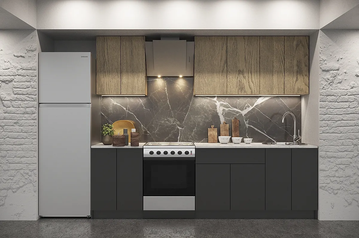 Столешница дополнена тёмным глянцем "Кастилло", "Мрамор Марквина черный" или снова глянцем "Кастилло", толщиной 38 мм, что обеспечивает долговечность и устойчивость к механическим воздействиям. Кухонный гарнитур Белль обладает брутто массой 192.59 кг и объемом 0.39083 куб.м., демонстрируя качественный подход к изготовлению и продуманность каждой детали. Завершением данного произведения кухонного искусства выступает производитель — Группа компаний кухни, гарант качества и утончённости. Выбирая Этот гарнитур, вы выбираете комфорт и эстетическое удовольствие для вашей кухни.