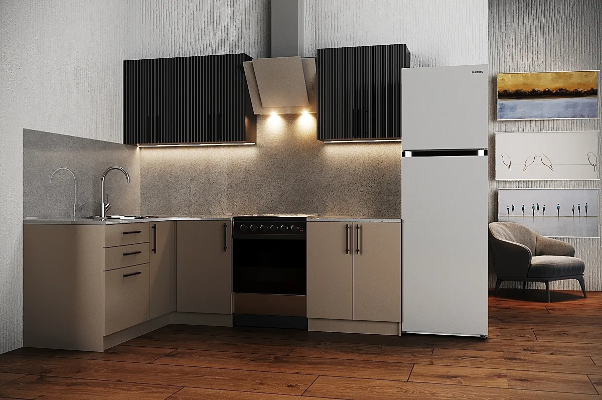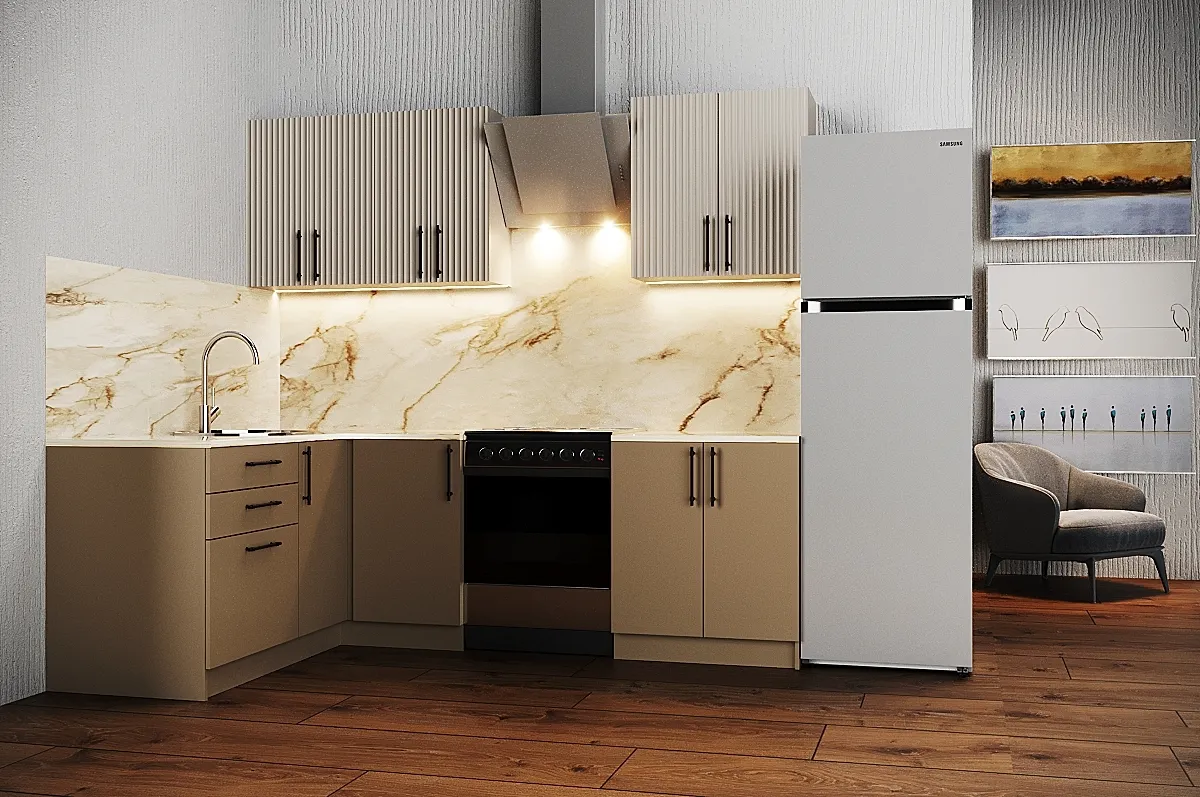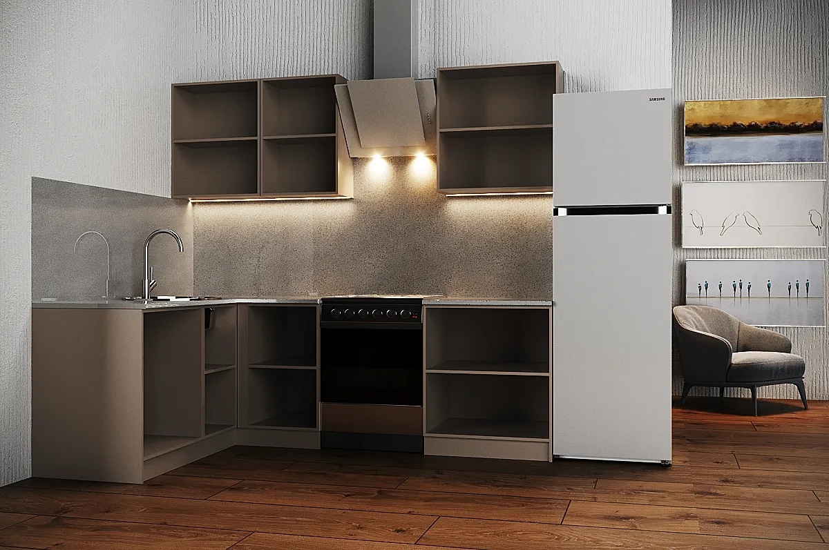 Ручки, столешница, стеновая панель, мойка, смеситель и бытовая техника продаются отдельно.