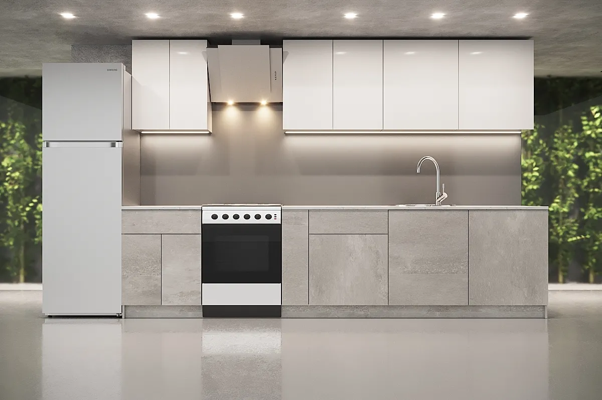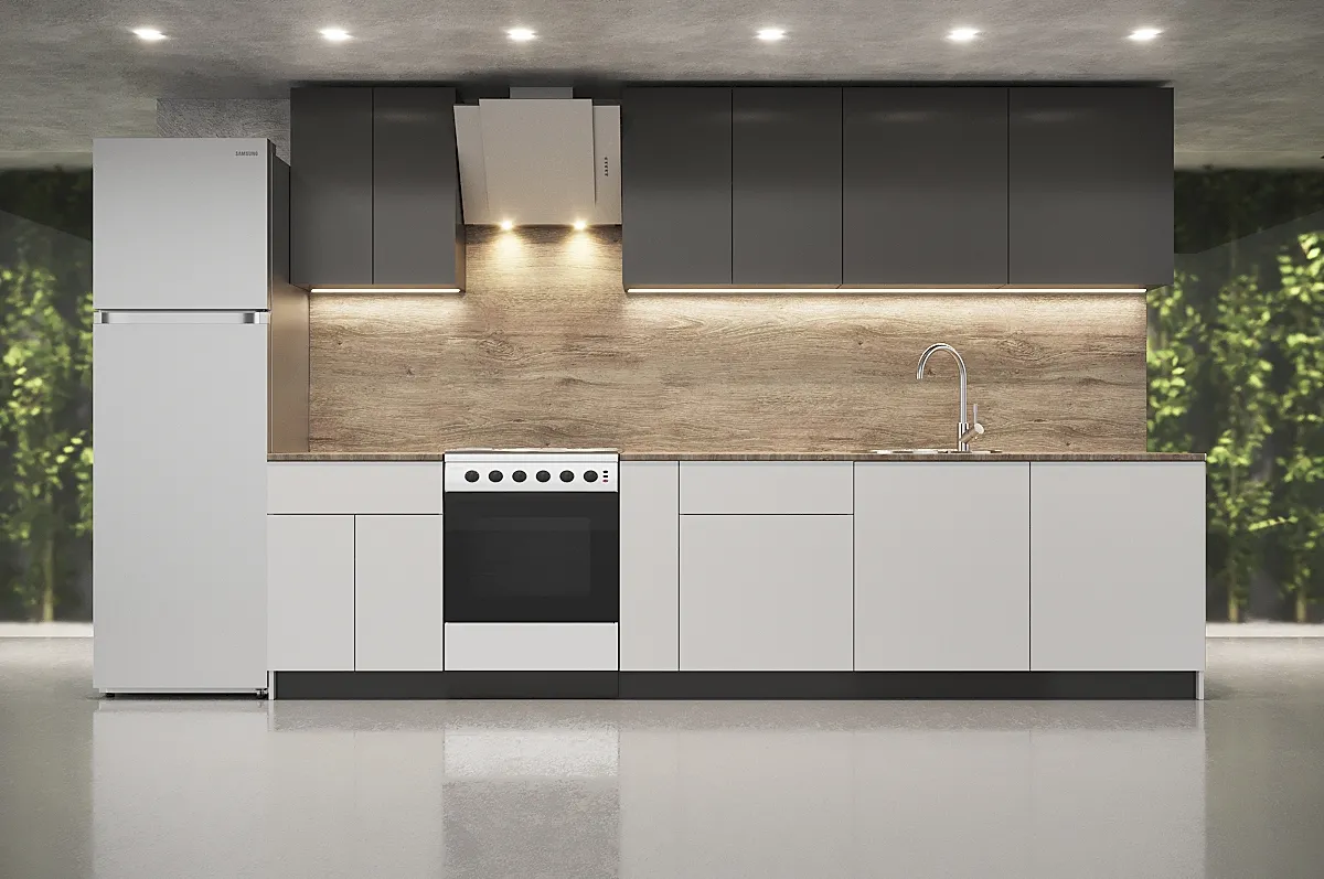 Ручки, столешница, стеновая панель, мойка, смеситель и бытовая техника продаются отдельно.